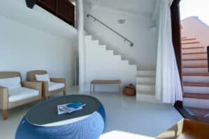 Enter through a spacious balcony that leads you directly into the living area. A bright and welcoming space greets you, inviting you to relax and enjoy unforgettable moments.
