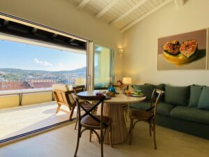 All’interno, troverete interni luminosi e sofisticati, nuovissimi arredi di design, una cucina completamente attrezzata e spazi creati per il vostro benessere e la vostra tranquillità. Un’atmosfera unica dove lusso e comfort si fondono perfettamente per un soggiorno indimenticabile.