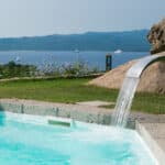 The property has two swimming pools that are perfectly integrated into the granite rock landscape. One is larger and deeper, and the smaller one is shallow and ideal for children. The pools are equipped with remote controlled colored lights, counter-current swimming, neck massage jets and waterfall, air-massage area (geyser), comfortable stone stairs, and an octagon-shaped jacuzzi with seating for 14 people, with different types of jet.