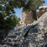 The completely fenced garden is laid out on various natural levels and it features a number of typical Mediterranean plants and rocks in very strange, surreal shapes.