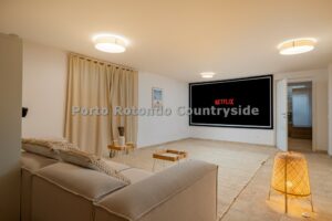 The Villa has a well-kept private garden of 1.5 hectares, with Mediterranean vegetation and enjoys a wonderful view of the Gallura countryside. In the highest part of the land, reachable through a comfortable walkway and characterized by a fabulous sea view over the Gulf of Marinella and the island of Mortorio, there is the beautiful infinity pool, an ideal place to relax and enjoy the wonderful Sardinian sun. An external laundry area and a covered parking space (for 2 cars) complete the property.