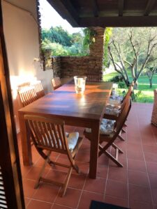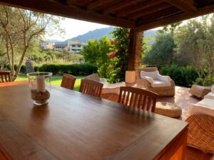 A beautiful portion of a villa with garden located a few steps from Ira beach, the Melograno consists of a large living room with fireplace, a pleasant dining area, a large kitchen connected with the veranda furnished with wicker and table to eat. It has five bedrooms, for a total of 10 beds, three bathrooms, two beautiful terraces with sea views, and covered parking.