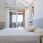 The ground floor consists of a dining room, a bright spacious living room with a large window, a fireplace, satellite TV and a fully equipped kitchen. The covered veranda is furnished with comfortable sofas and it features an outdoor dining room with a lovely view of the sea. The sleeping area on the first floor consists of 2 double bedrooms with en suite and 1 double bedroom that shares the bathroom with 1 bunk beds bedroom. Every room is equipped with air-conditioning and safety deposit box.