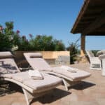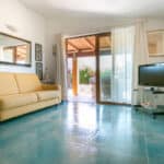 The living room leads directly to the covered veranda, cool during the day and sheltered in the evening, furnished with comfortable armchairs, it is the ideal place to relax and enjoy your holiday.
