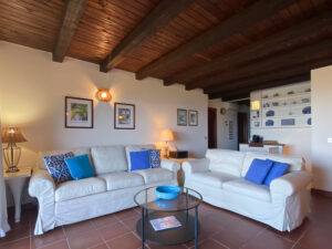 La villa si sviluppa su due piani. Al piano d’ingresso si trovano un ampio soggiorno con zona pranzo che si apre su una comoda terrazza panoramica, la cucina e una camera matrimoniale con bagno privato.