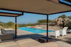 The Villa has a well-kept private garden of 1.5 hectares, with Mediterranean vegetation and enjoys a wonderful view of the Gallura countryside. In the highest part of the land, reachable through a comfortable walkway and characterized by a fabulous sea view over the Gulf of Marinella and the island of Mortorio, there is the beautiful infinity pool, an ideal place to relax and enjoy the wonderful Sardinian sun. An external laundry area and a covered parking space (for 2 cars) complete the property.