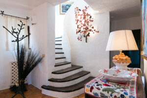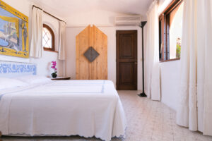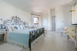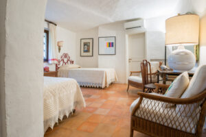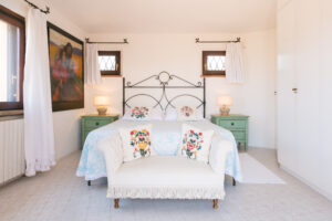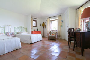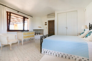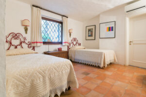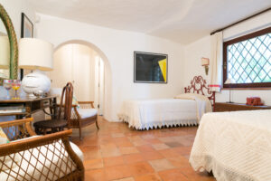 An internal staircase leads to the sleeping area on the upper floor. The master bedroom with en-suite bathroom overlooks the large terrace from which you can enjoy the wonderful view of Porto Cervo and the marina. Another double bedroom shares the bathroom with a bedroom with 2 single beds, and the situation is ideal for a couple with children.